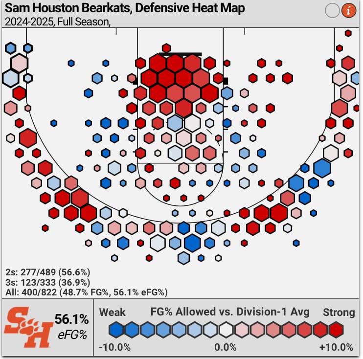 Here’s the short version of the scouting report: Sam Houston is 1-9 against D1 opponents when they shoot less than 45% as a team from behind the arc. That is not sustainable, guys.