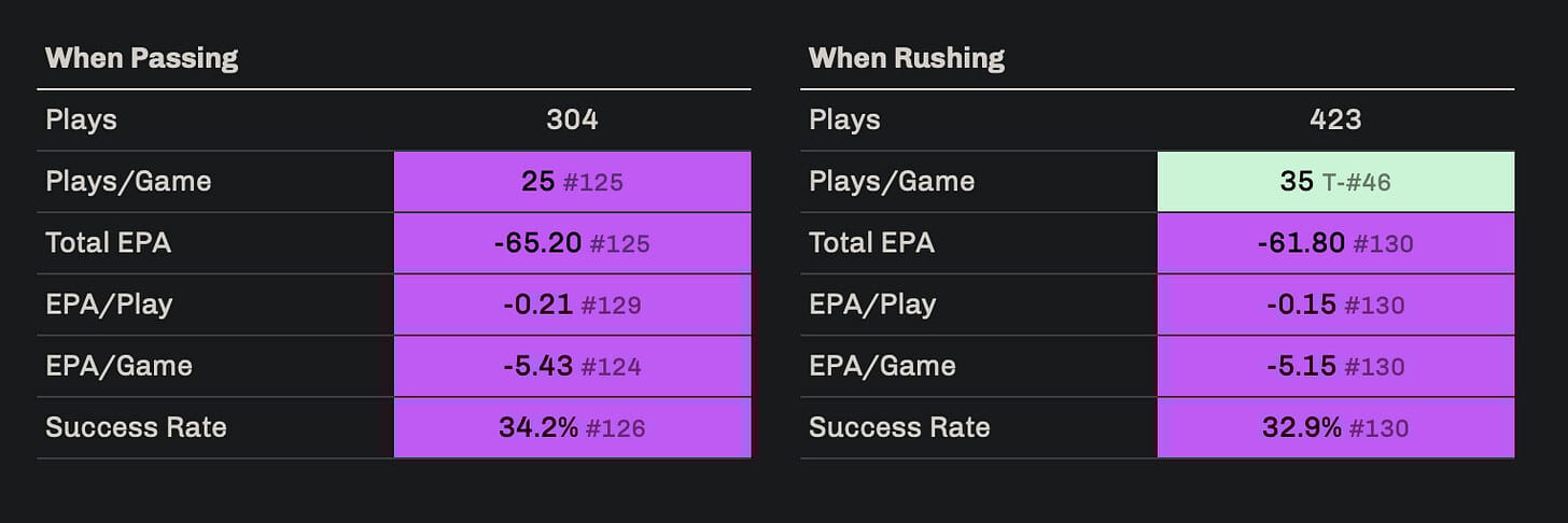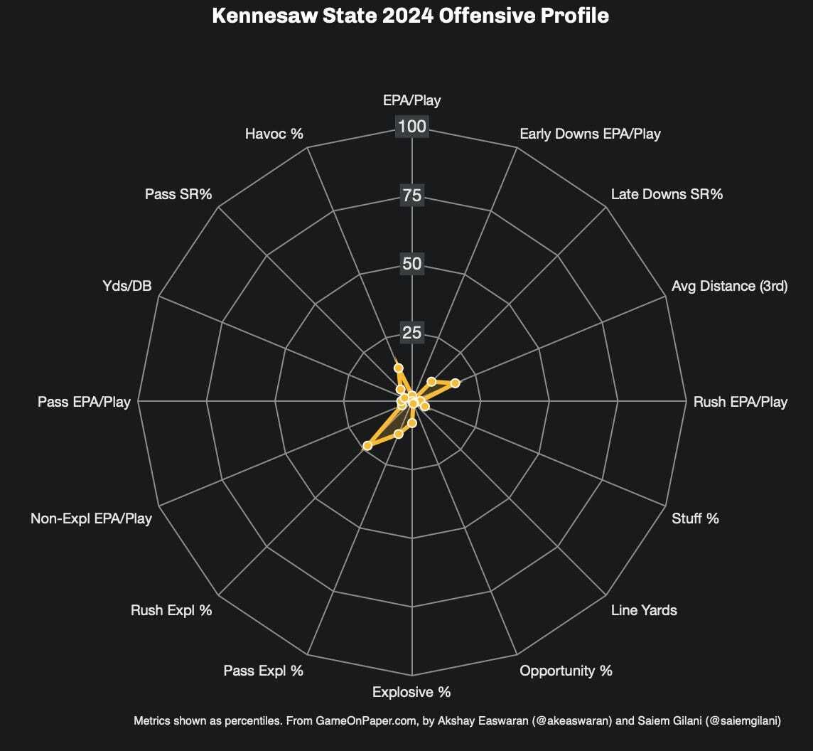 It’s still stunning to see the PA/RPO 9.83% rate for Kennesaw State’s pistol offense that was supposed to major in RPOs last fall.
