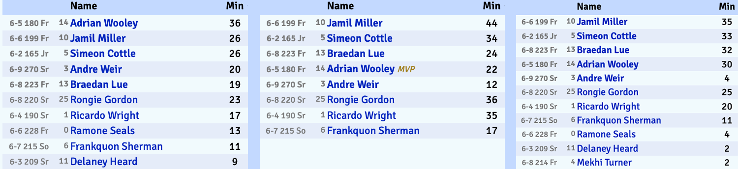 Load management feels like the main story from game one. RJ Johnson came off the bench and only played 8 minutes, similar with Trey Simpson and his 10 minute cameo. Perry Smith did start, but only saw 11 minutes of action. That’s not too far off from how Pettway divided his minutes up at the Western Slam in Alberta last season, but a little less subtle this time around unless a couple guys are dealing with nagging injuries.